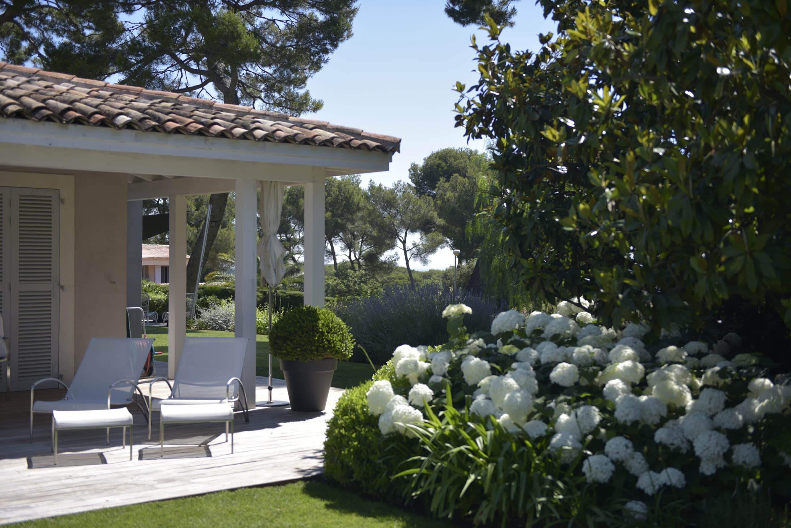 Integration of the villa into a haven of Mediterranean peace by creating several living and relaxation areas around the house. Trees were added to complement the existing cedar and provide shade and coolness.